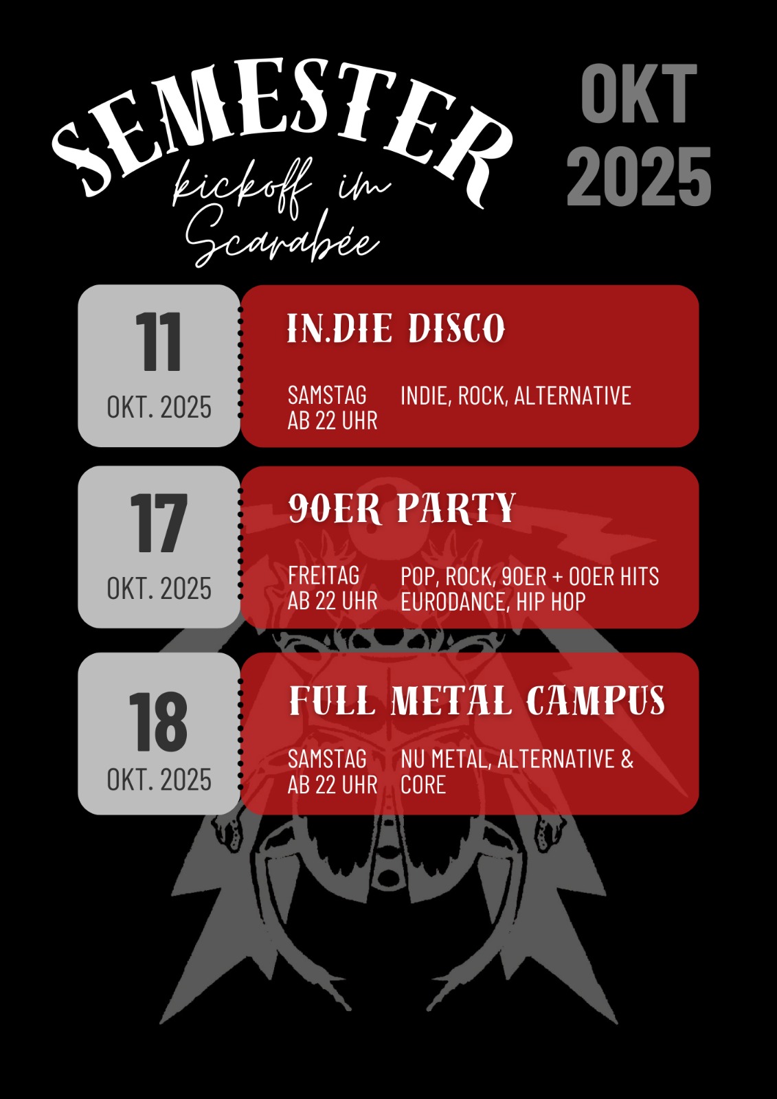 So hat sich das Scarabée auch musikalisch nie einer bestimmten Richtung verschrieben, sondern seit jeher auf die Mischung unterschiedlichster Musikstile gesetzt. Dies manifestiert sich auch in der schier unerschöpflichen Anzahl von Tonträgern (LP’s und CD’s), die hier seit über 55 Jahren gesammelt und gepflegt werden.